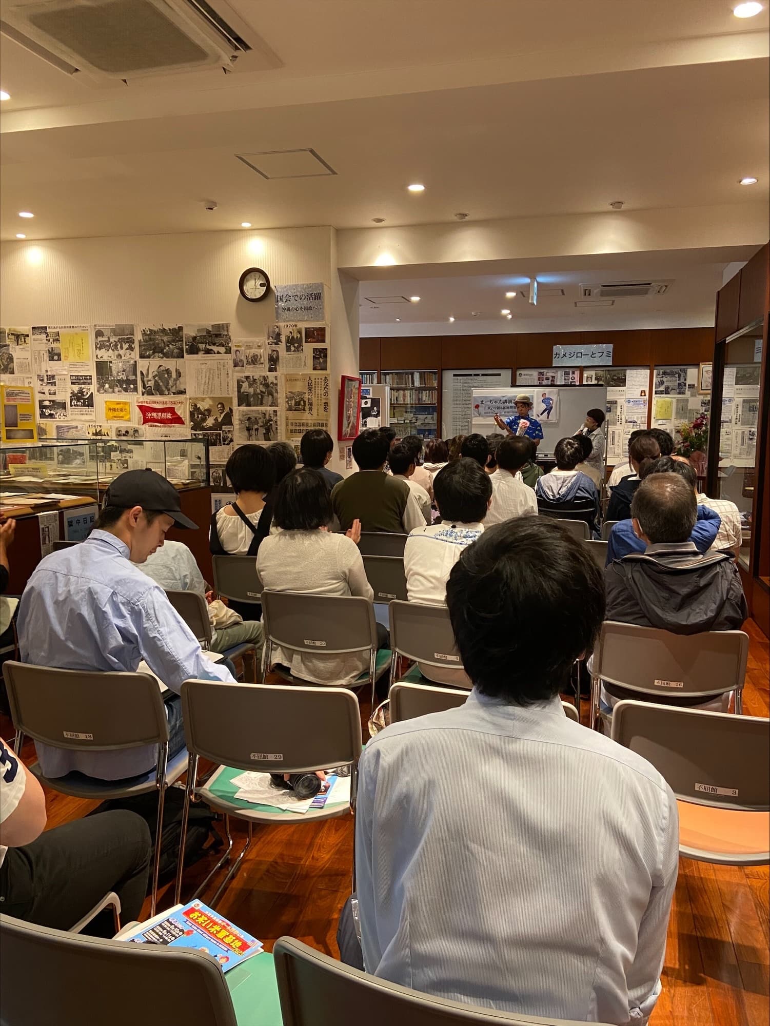 奄美ー沖縄本島・宮古・石垣・与那国の島々の自衛隊ミサイル基地、辺野古新基地建設ほか米軍基地をドローンでとらえた状況を上映し、政府と米軍による基地周辺の「ドローン撮影規制」についても、