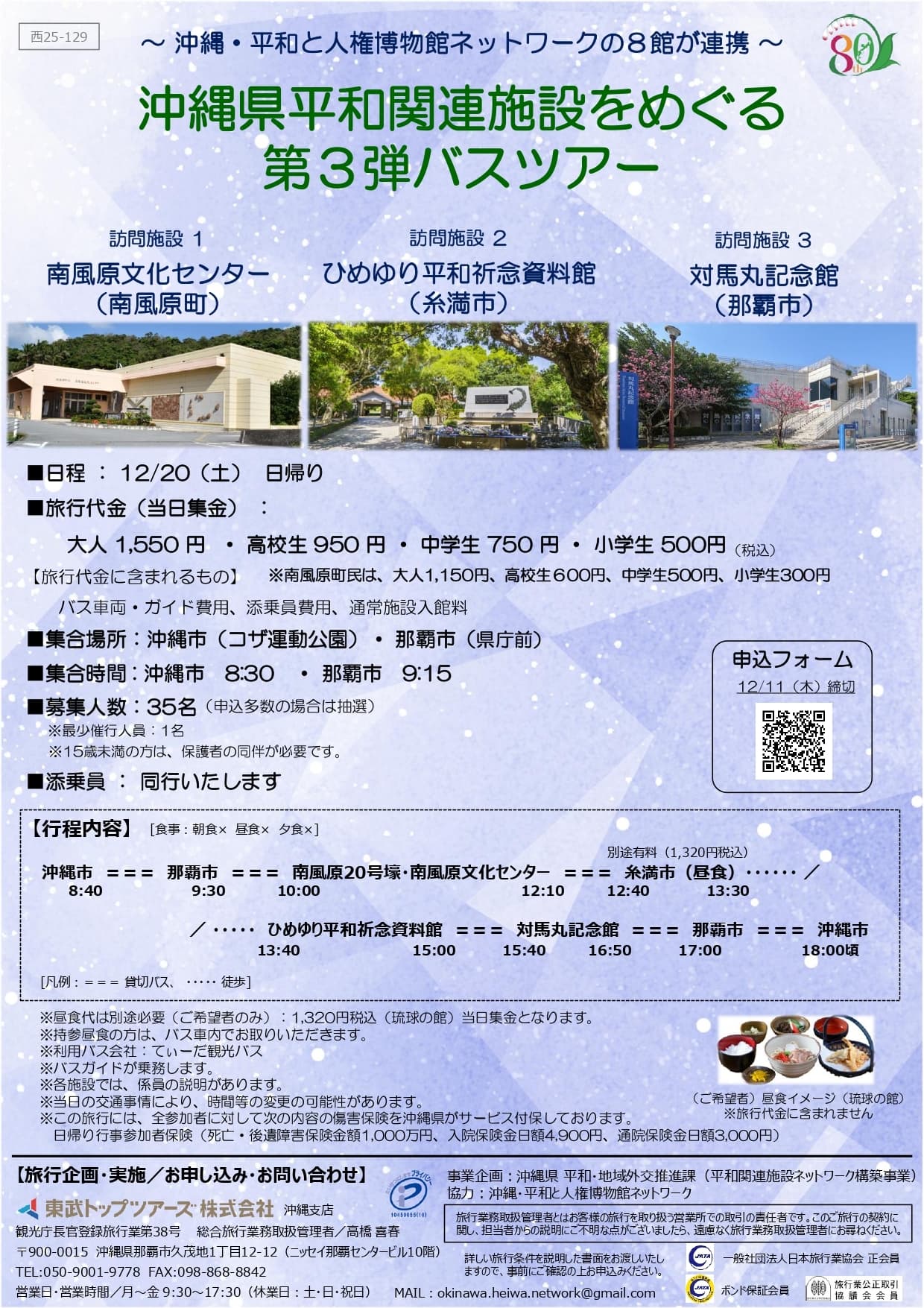 いよいよ、最後のバスツアー第3弾は、ひめゆり資料館、南風原文化センター、対馬丸記念館を巡ります。