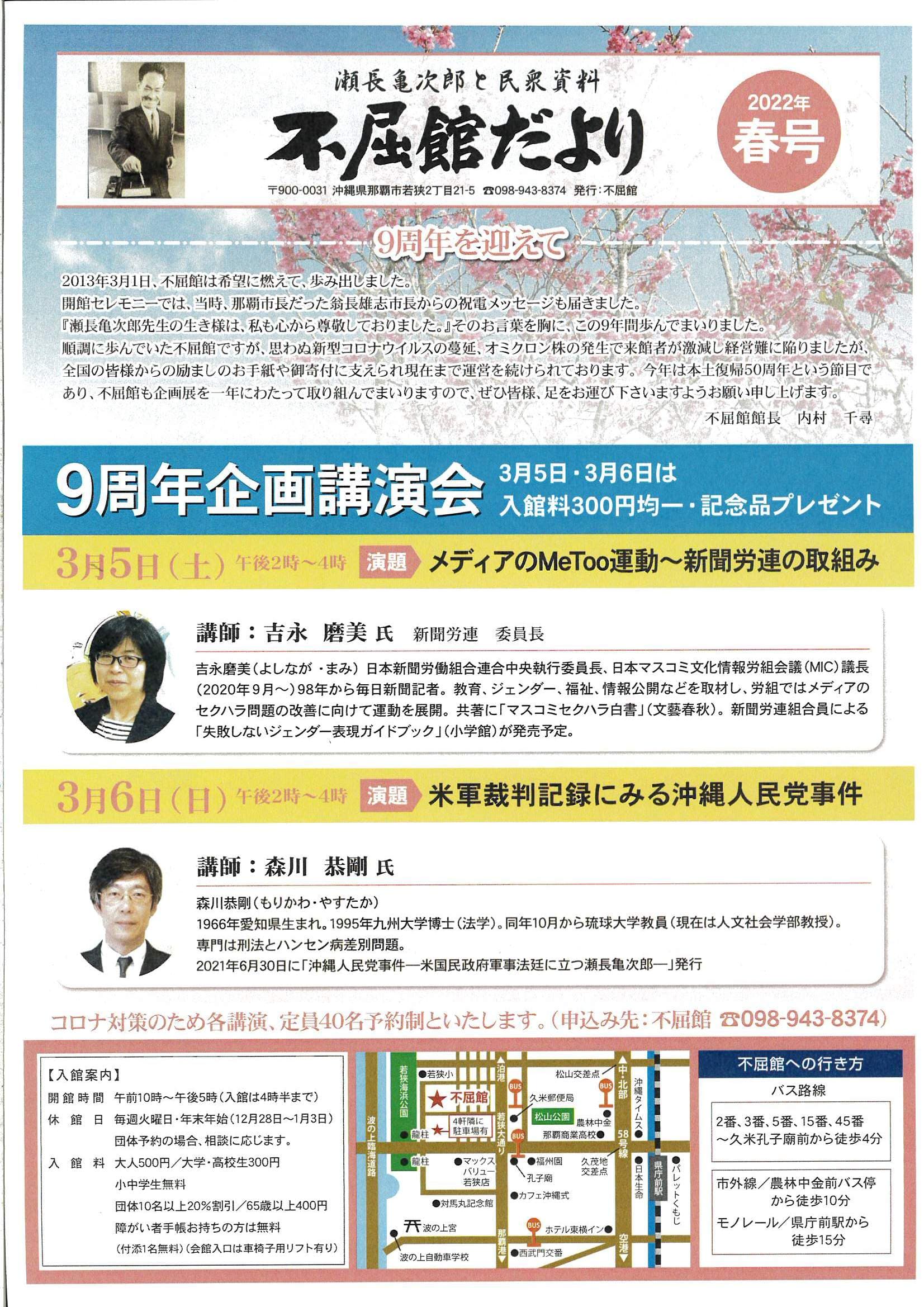 毎年2月中旬頃にお届けしている『不屈館だより』ですが、