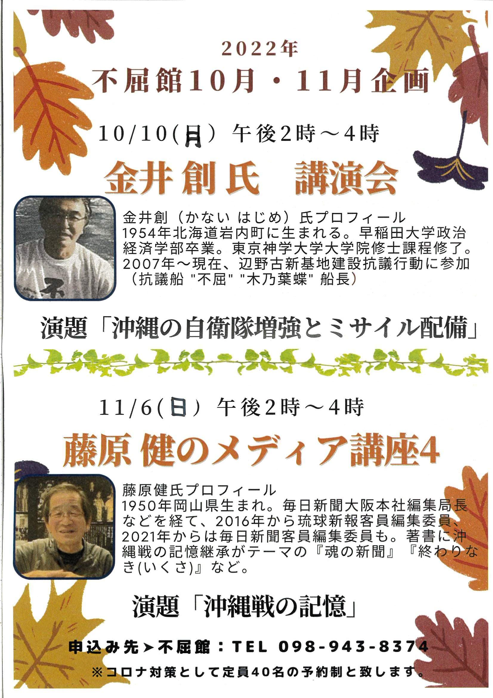 本日10/9、沖縄タイムス朝刊の社会面に不屈館の記事が掲載されました。新聞を読み、早速南城市から来館された方もおり、嬉しく思います。