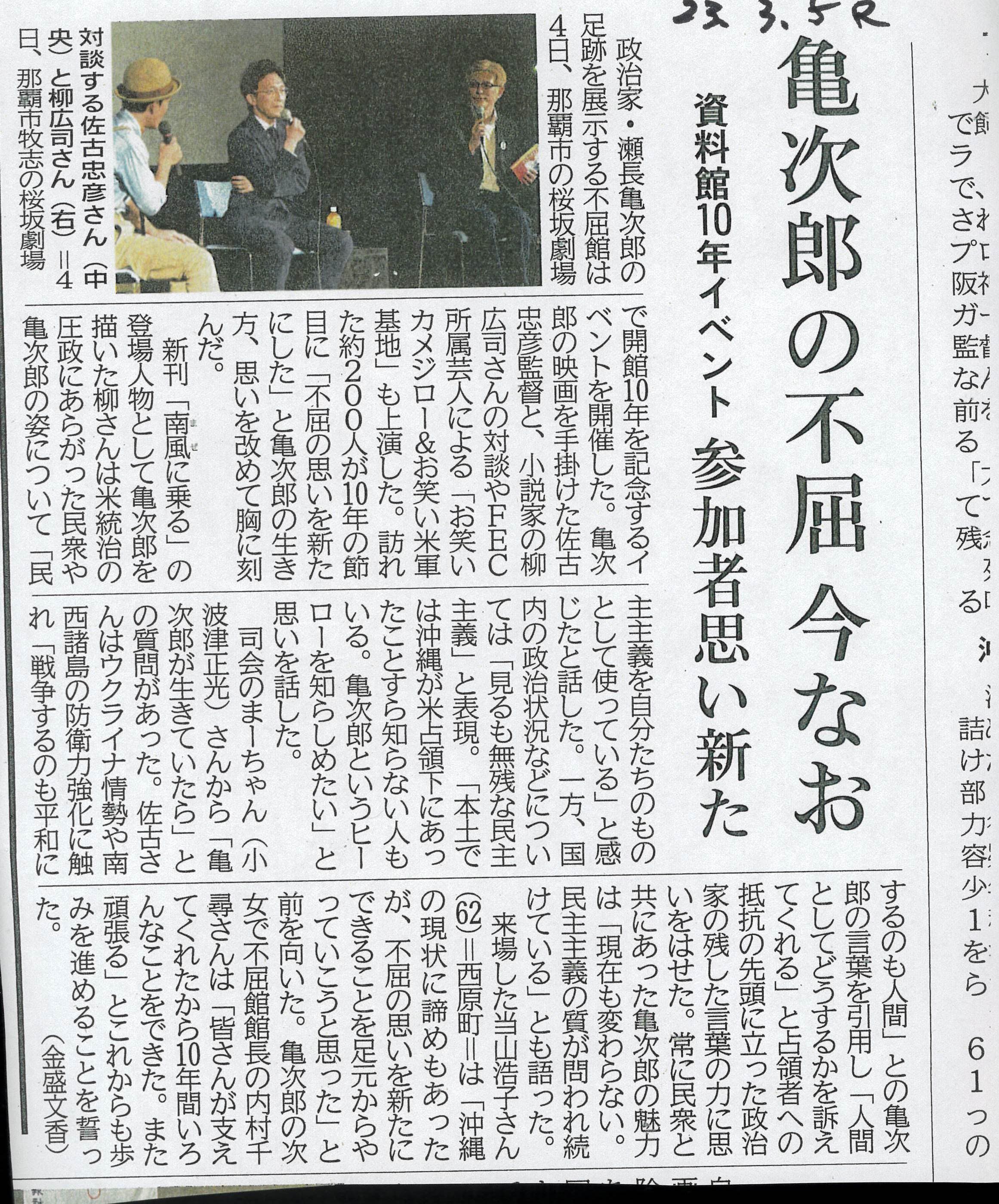 10/2日付けと3日付けの琉球新報に不屈館クラウドファンディングの経過や目標達成の記事が掲載されました!