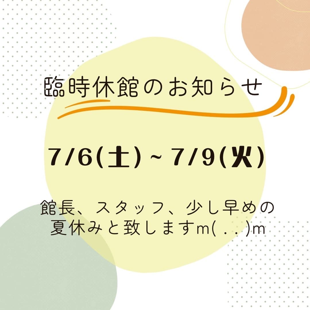 2024年7月6日(土)~2024年7月9日(火)は臨時休館とさせていただきます。