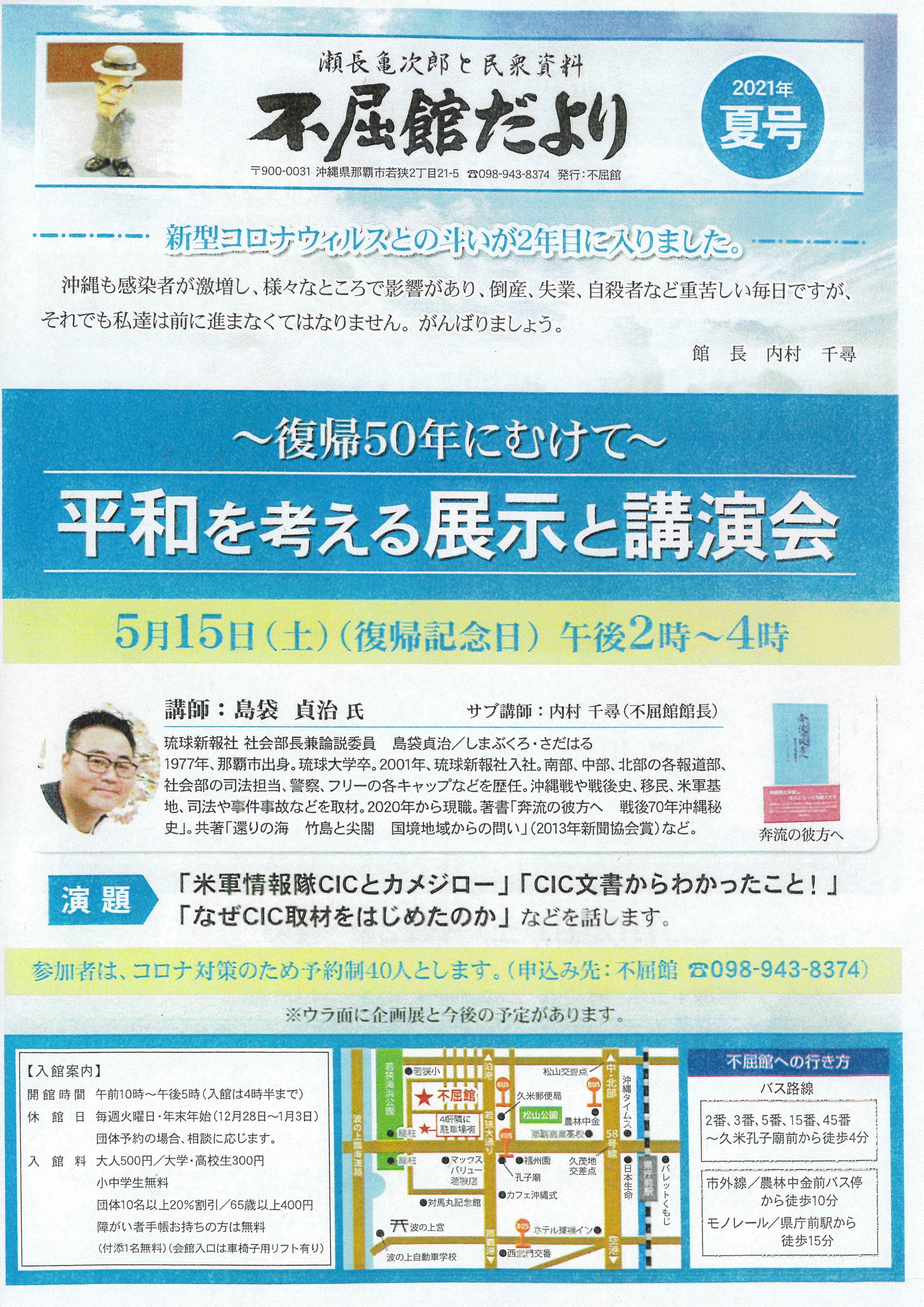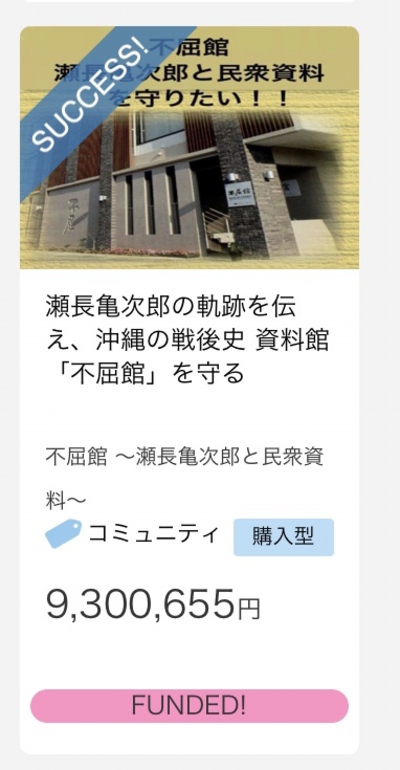 コロナ禍で皆様も苦しい状況の中、寄付を募る事はとても心苦しかったのですが、クラウドを通して、全国の皆様が瀬長亀次郎の事に興味を持っている事を知り、不屈館の想いに賛同して下さる方も多く、驚きながらも大変嬉しく思いました。